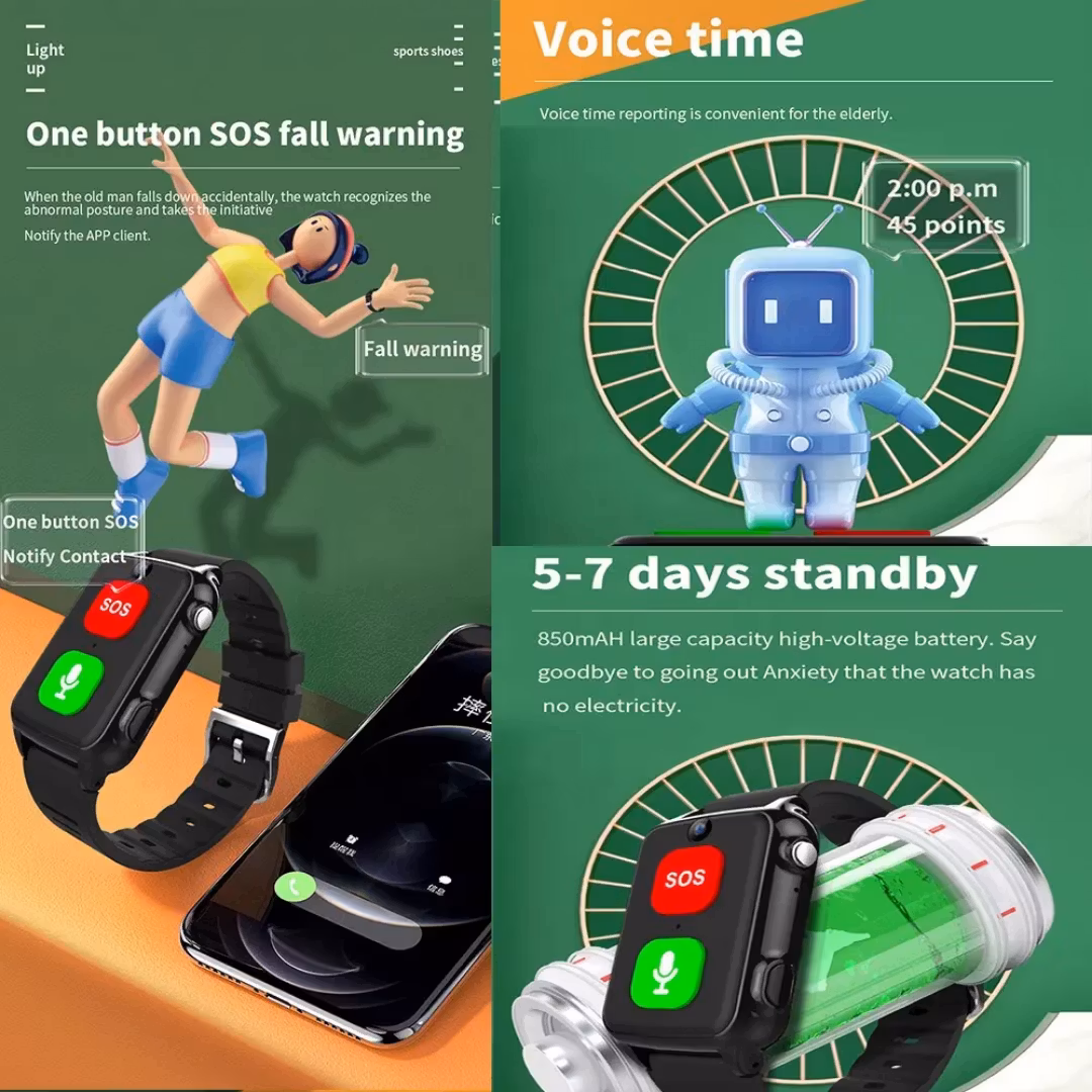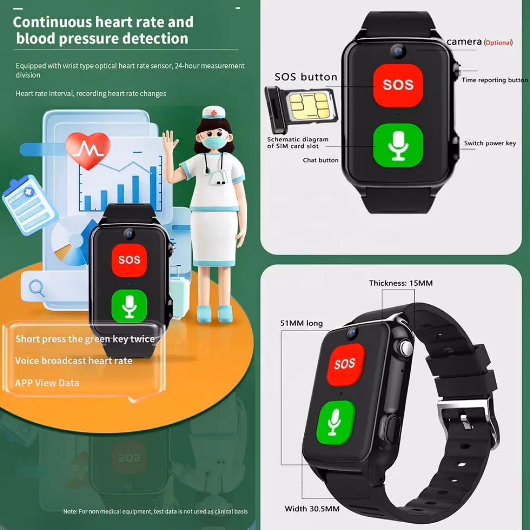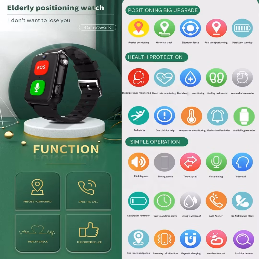 1. Huvudfunktion: 4G-sim-kort solt+ SOS+ WIFI/GPS/LBS Plats + HD-kamera videosamtal röstchatt