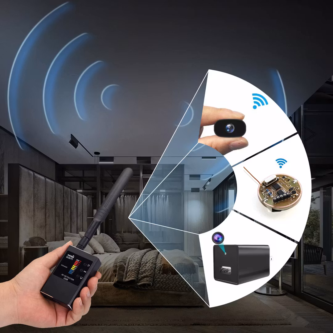Med en professionell RF-detektor kan du enkelt upptäcka eventuella insekter på några sekunder och skydda dig själv från ofattbara skador från nyfikna ögon och öron.