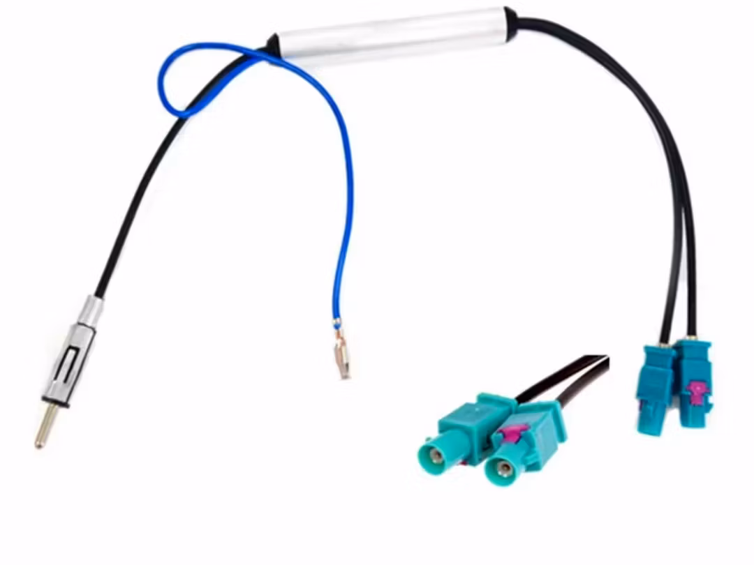 Denna adapter krävs när man byter ut en bils fabriksradio mot en eftermarknadsradio som inte är kompatibel med diversitetsantennsystemet. Den högkänsliga förstärkaren ökar radiosignalen något. Du kan också ersätta den ursprungliga radioadaptern med denna förstärkta adapter för att åtgärda problemet med dålig radiosignal. Det är mycket användbart men det garanterar inte att problemet löses 100 %!! Obs: Den blå kabeln som medföljer adaptern måste anslutas till valfri 12V-tändningsledning. Vi föreslår att du ansluter till förstärkarens fjärrkabel på nätet för din eftermarknadsenhet. Observera: Denna artikel är endast för dubbel fakra-kontakt (2 separata fakra-uttag)