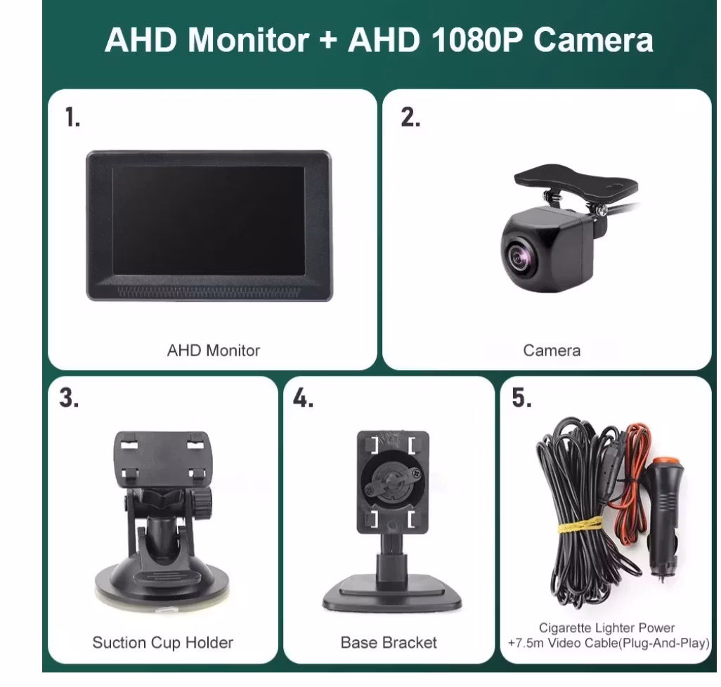 Plug and Play Enkel installation 4,3-tums IPS HD-parkeringsmonitor med AHD 1080P backkamera 7,5M kabel för SUV:ar, lastbilar, husbilar