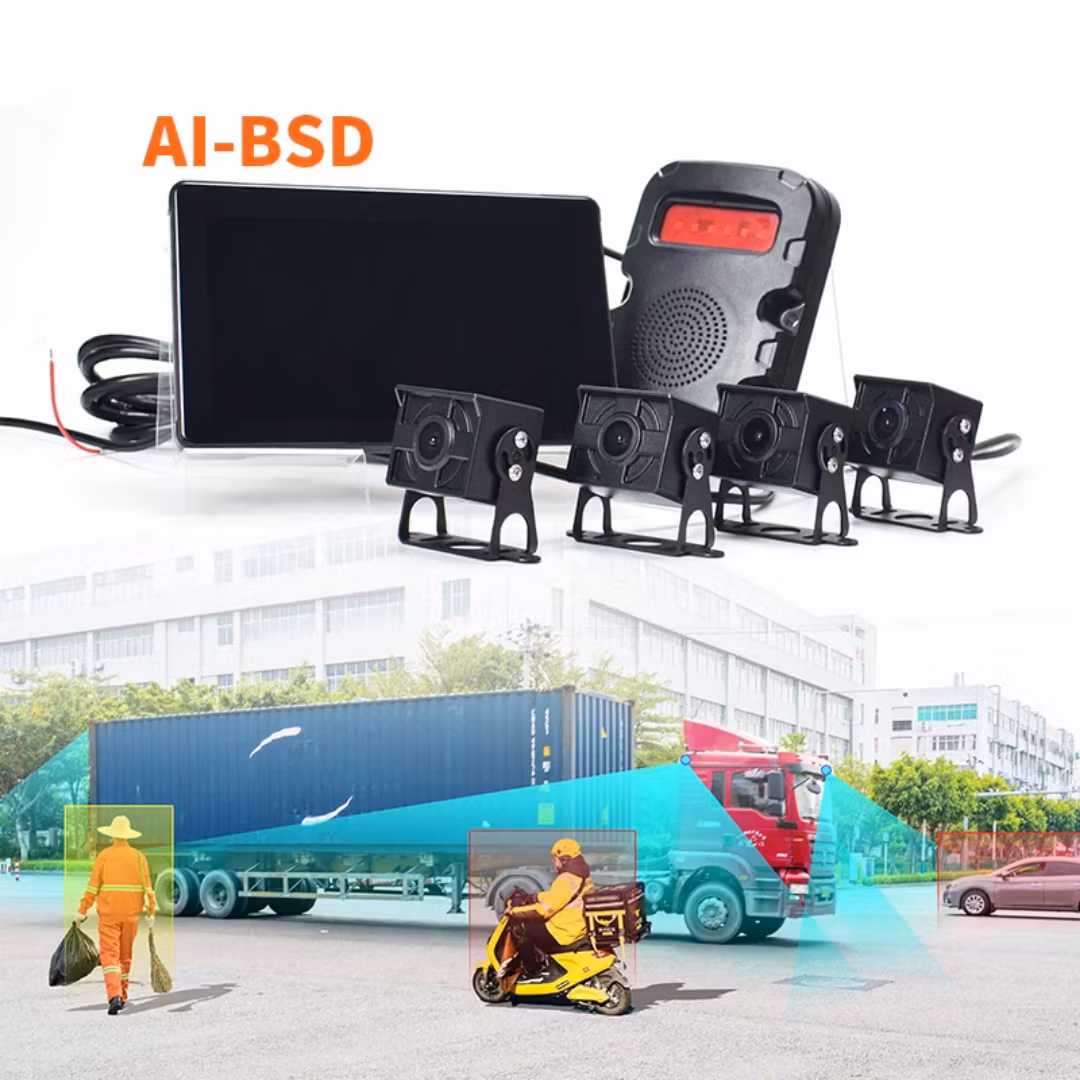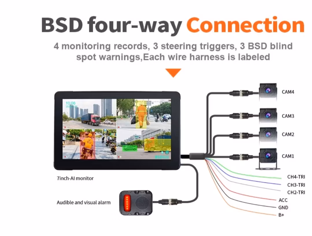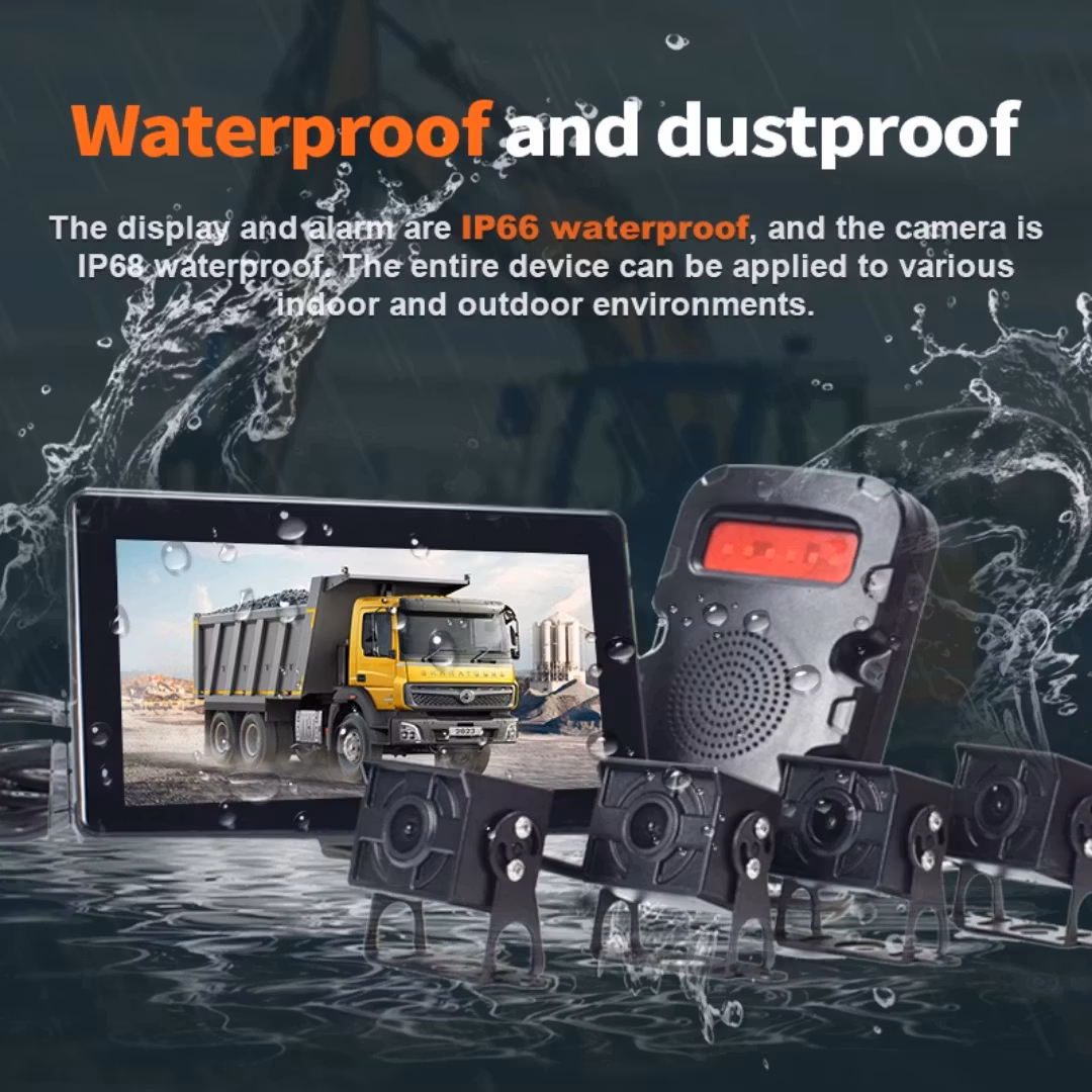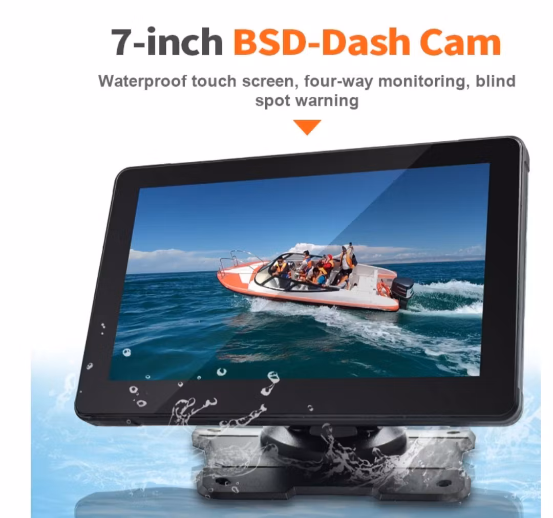 7-tums vattentät dödvinkelövervakningssats för fordon med BSD och ljud- och bildlarm IPS TFT LCD