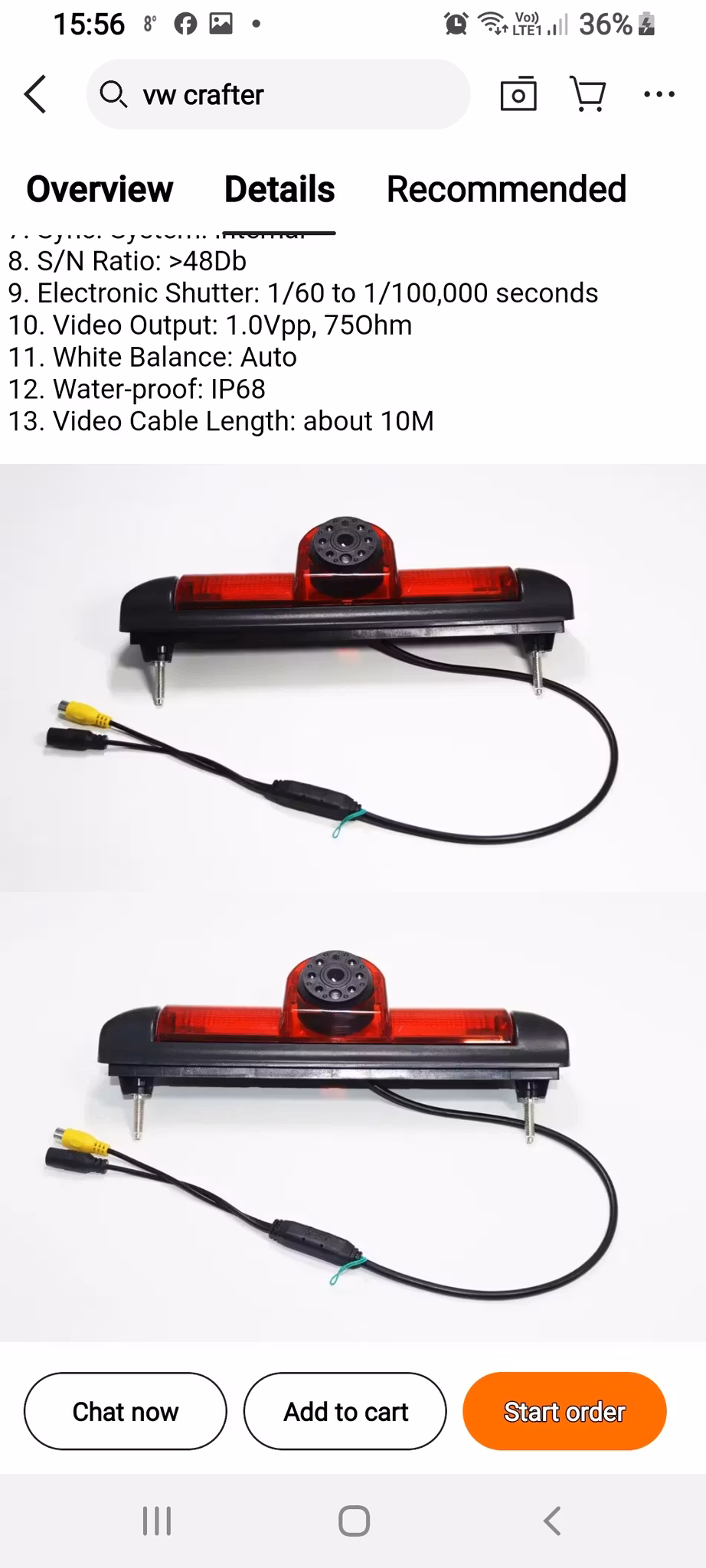 1, Typ: bromsljuskamera för användning av 2006-2019 2gen Peugeot Boxer med flera. 2, Sensor 1/4 PC7070 CMOS.