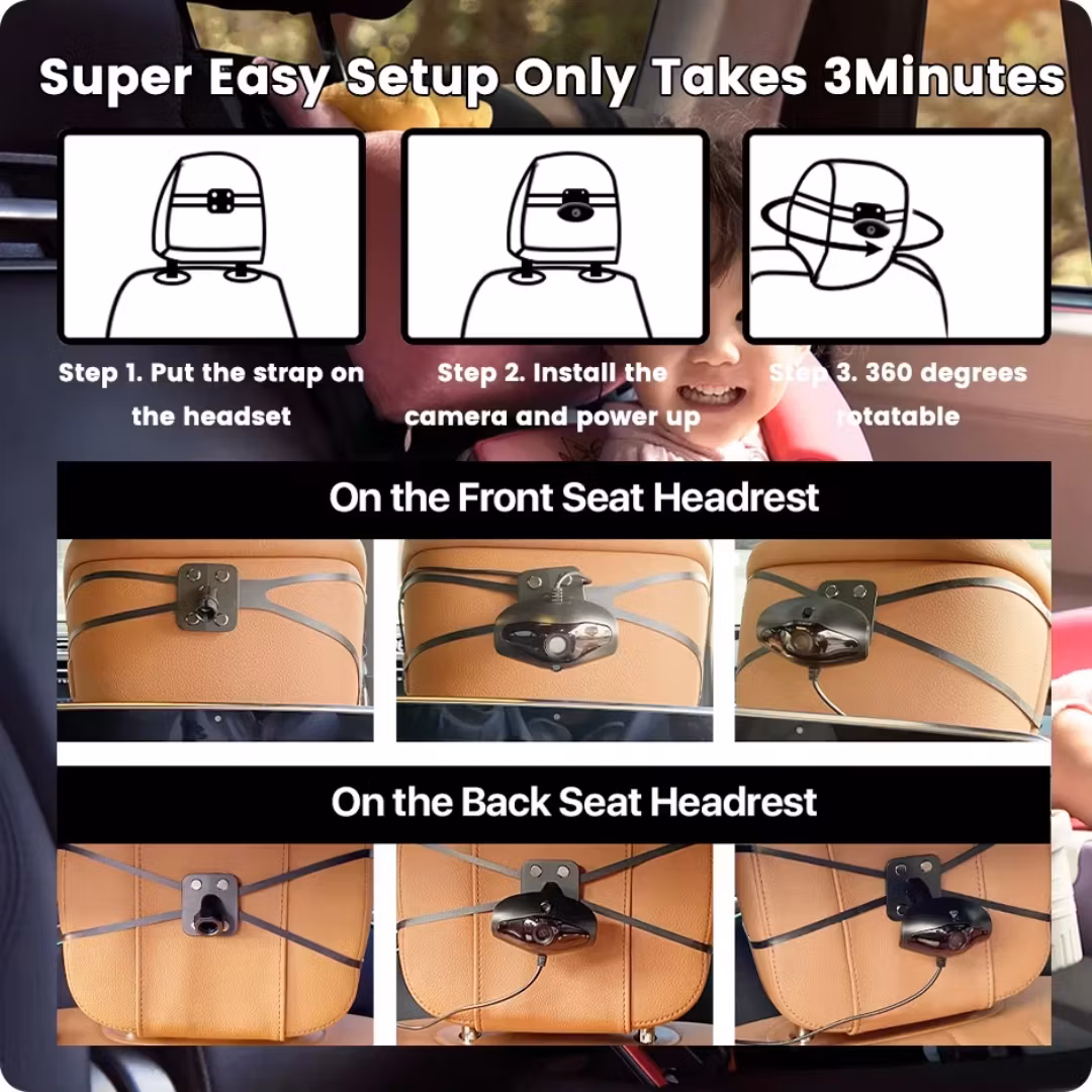anvisningar för att täcka valfri position på baksätet. 4 osynliga infraröda lysdioder säkerställer perfekt mörkerseende, du kan