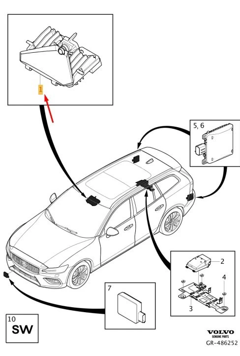 Delen är en central komponent i bilens säkerhets- och förarstödssystem. Den identifieras ofta som: