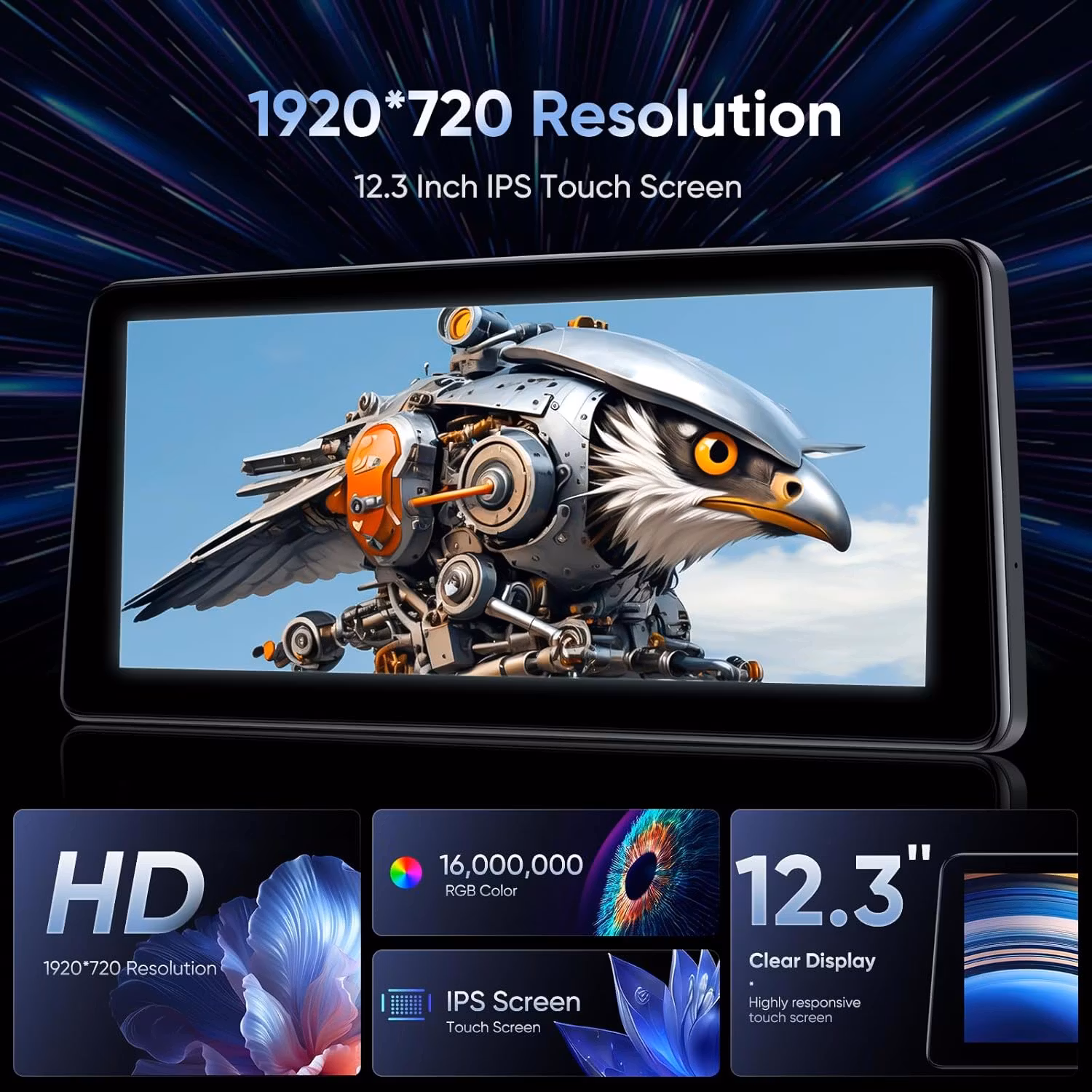 - Använd den senaste ultra HD 12.3 tums superbred IPS-skärmen med upplösning: 1280* 480 pixlar