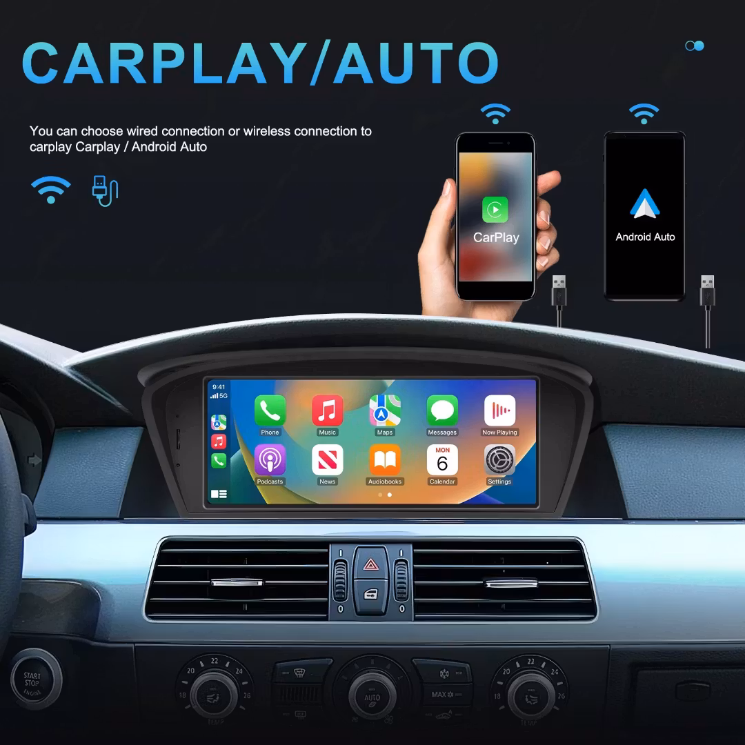 8,8-tums bilradio Carplay Android Auto med BT WIFI GPS FM för BMW 3/5-serien E60 2009-2012 originalbil + Android-system