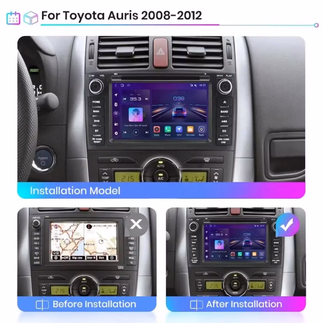 7"android 14, bilstereo Toyota Auris ( 2007--2012) gps wifi carplay android auto blåtand rds Dsp RAM: 6GB, ROM:128GB, 4G LTE + Gratis backkamera