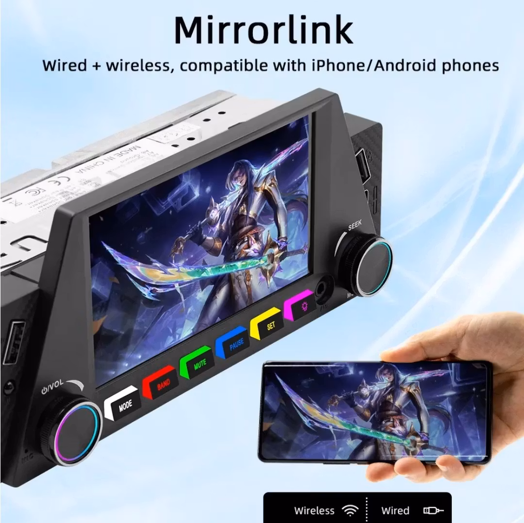4,7tum. 1Din bil radio mp5 spelare. carplay android auto backkamera