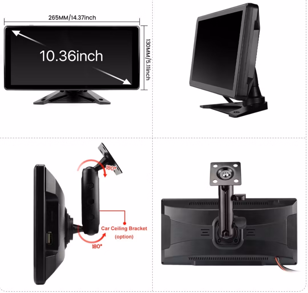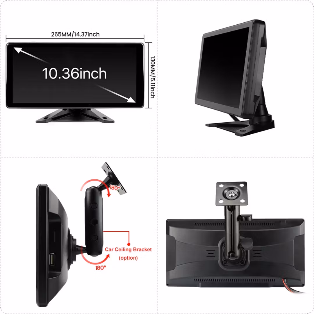 * 10,36 tums IPS-pekskärm. högupplöst 500CD/M2 , AHD 1920x1080P videoingångar. Delad skärm med 4 kanaler.