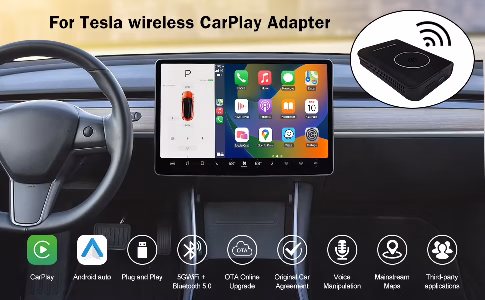 Carplay android auto box Tesla Model Y ,Tesla Model S ,Tesla Model 3 ,Tesla Model X