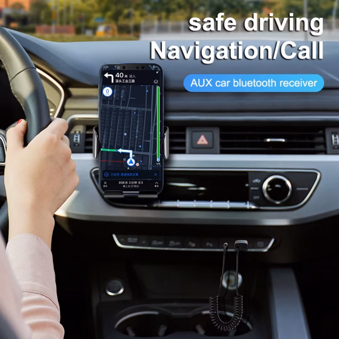 4. Handsfree-samtal: Med inbyggda mikrofoner låter Bluetooth-biladaptern dig njuta av telefonsamtal med handsfree-samtal direkt genom bilens högtalare. Med hjälp av detta kompakta Aux Bluetooth-bilpaket behöver du inte titta ner på telefonen när du är på språng. Ha en säker resa!