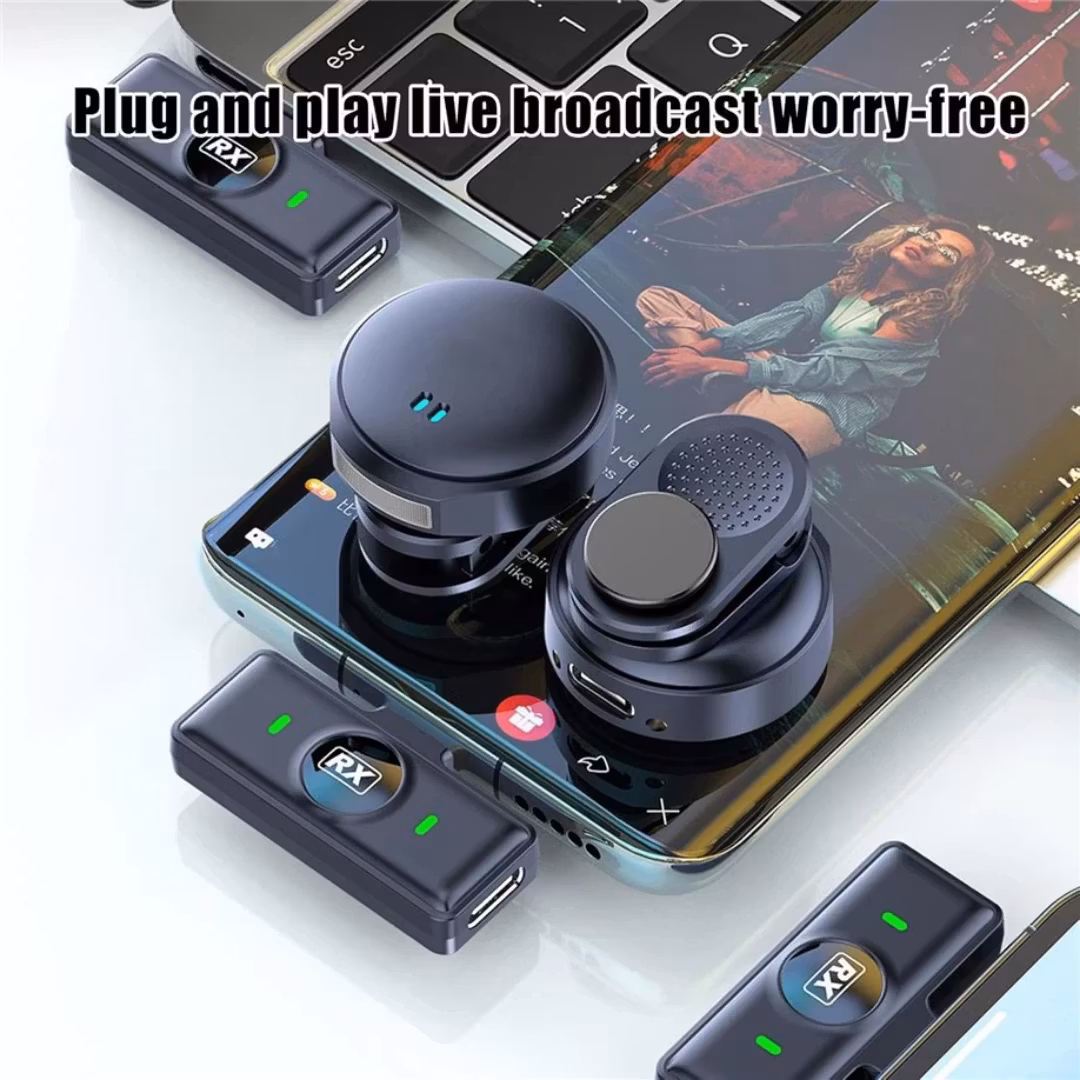 Trådlös Lavalier-mikrofon med klämma Bärbar ljud- och videoinspelning Mini-mikrofon för iPhone Android Mobiltelefon Liveladdning Broadcast Gaming