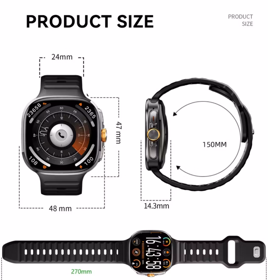 4. Lång batteritid: Njut av upp till 5–10 dagars batteritid med denna smartklocka, vilket säkerställer att du har gott om ström för att hålla dig uppkopplad hela dagen.