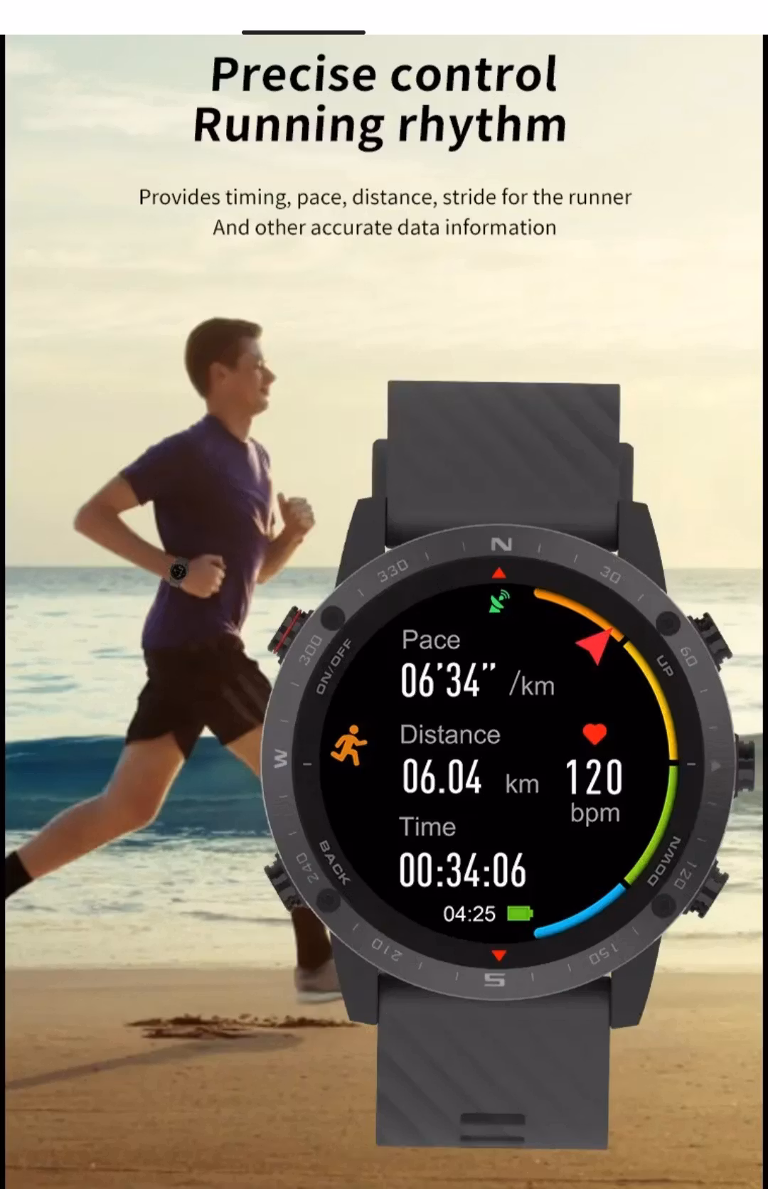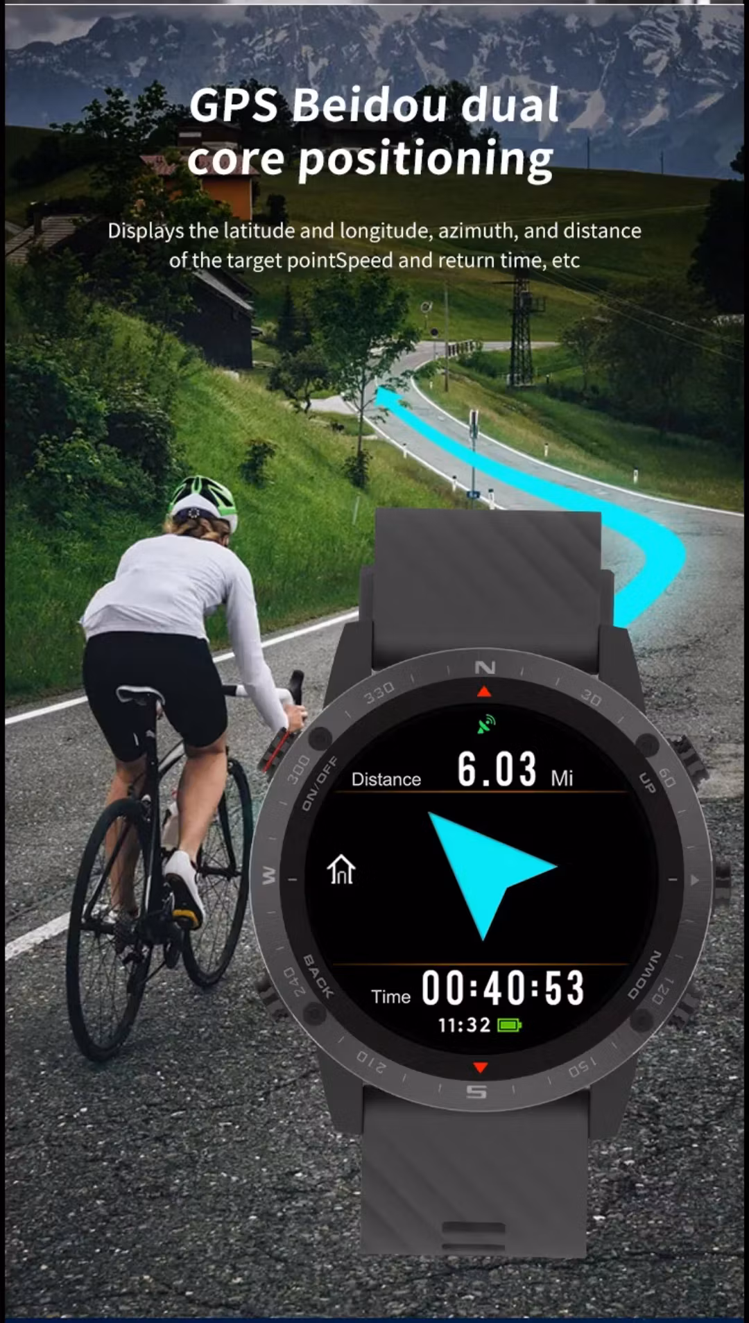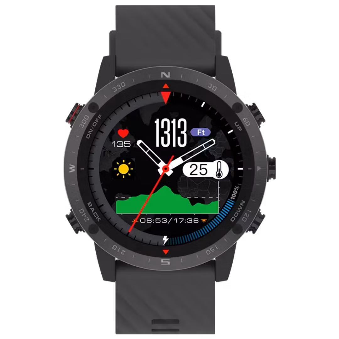 GPS-hastighet, multisportlägen, sportinspelning, sportbana, spårningsnavigering, bergsklättring, dykning, fiske, kompass,