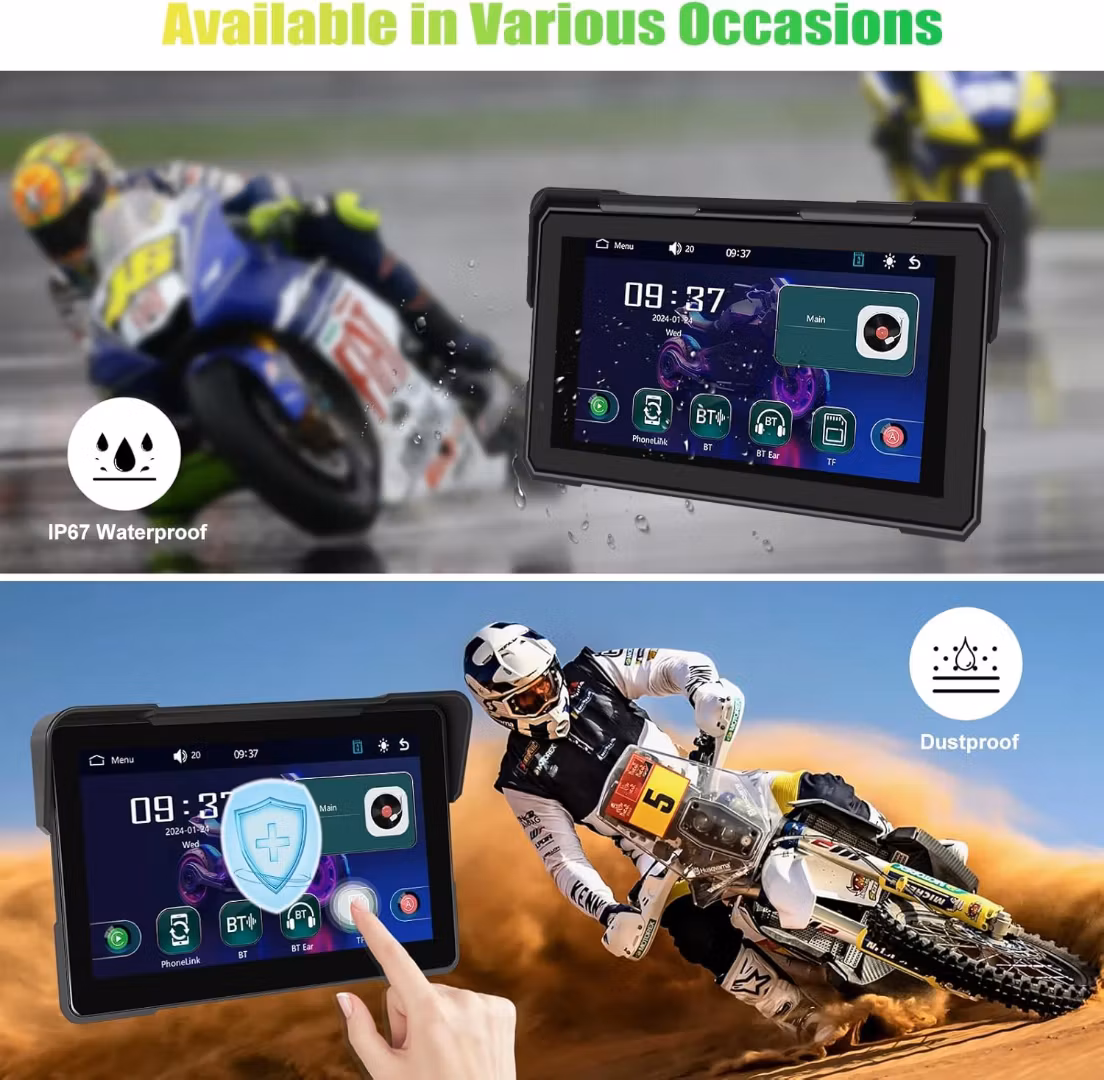 Intelligent körupplevelse: Denna motorcykel-carplay är din perfekta körkamrat. Oavsett om det är carplay eller Android Auto, fungerar de sömlöst med din smartphone, så att du kan njuta av navigering, musik och samtal utan att bli distraktionerad av din telefon.