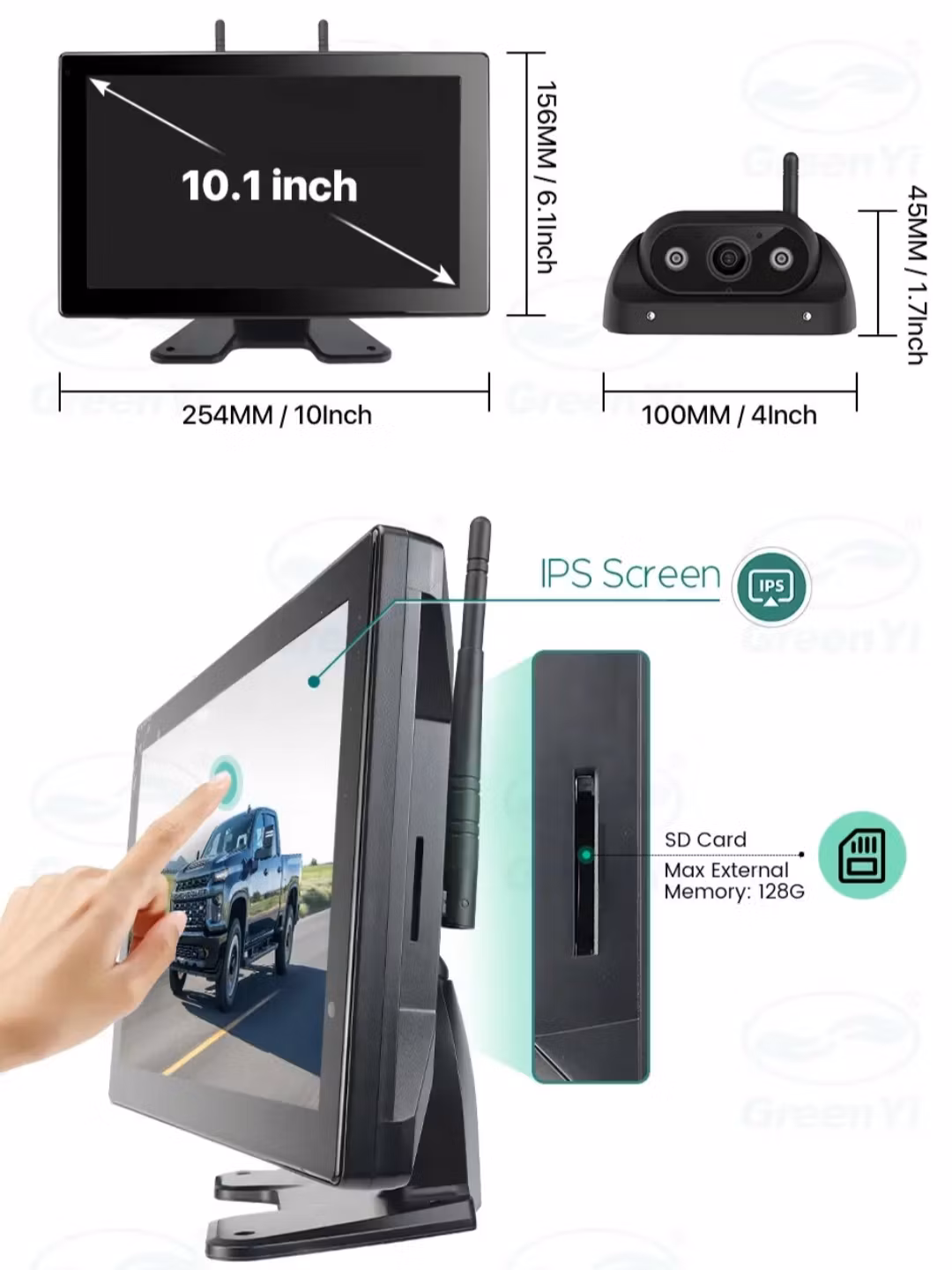 • Pekskärm 10,1 tums trådlös monitor, IPS-skärm.