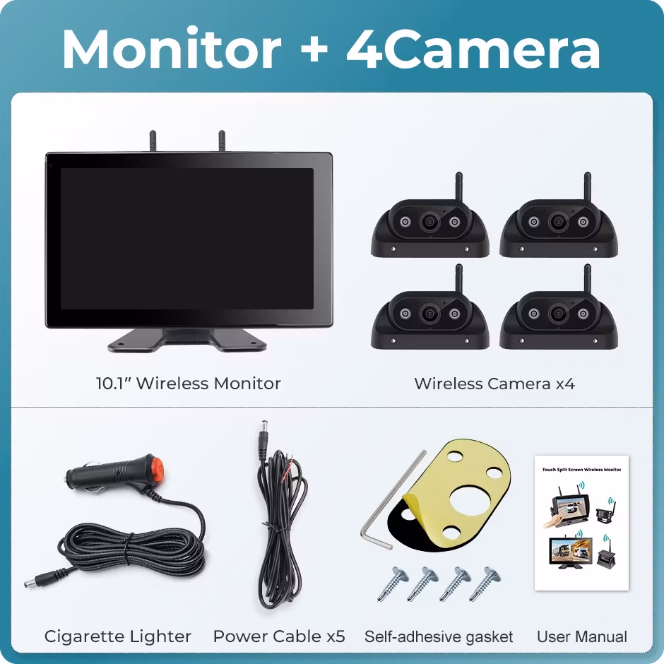 10,1'' AHD trådlös DVR-inspelningsmonitor pekskärm 4-kanals minikamera+ 128GB extra minne