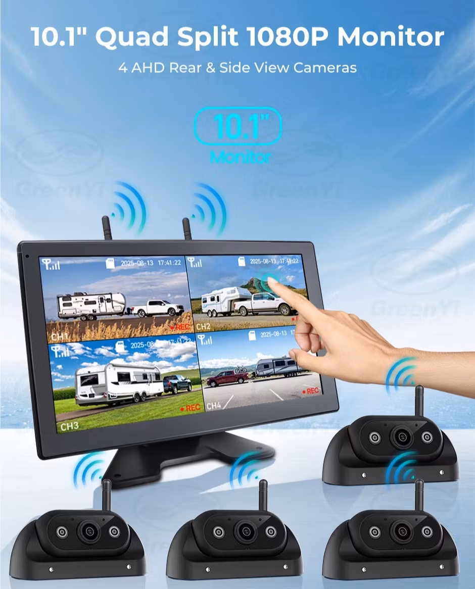 10,1'' AHD trådlös DVR-inspelningsmonitor pekskärm 4-kanals minikameraFunktioner: