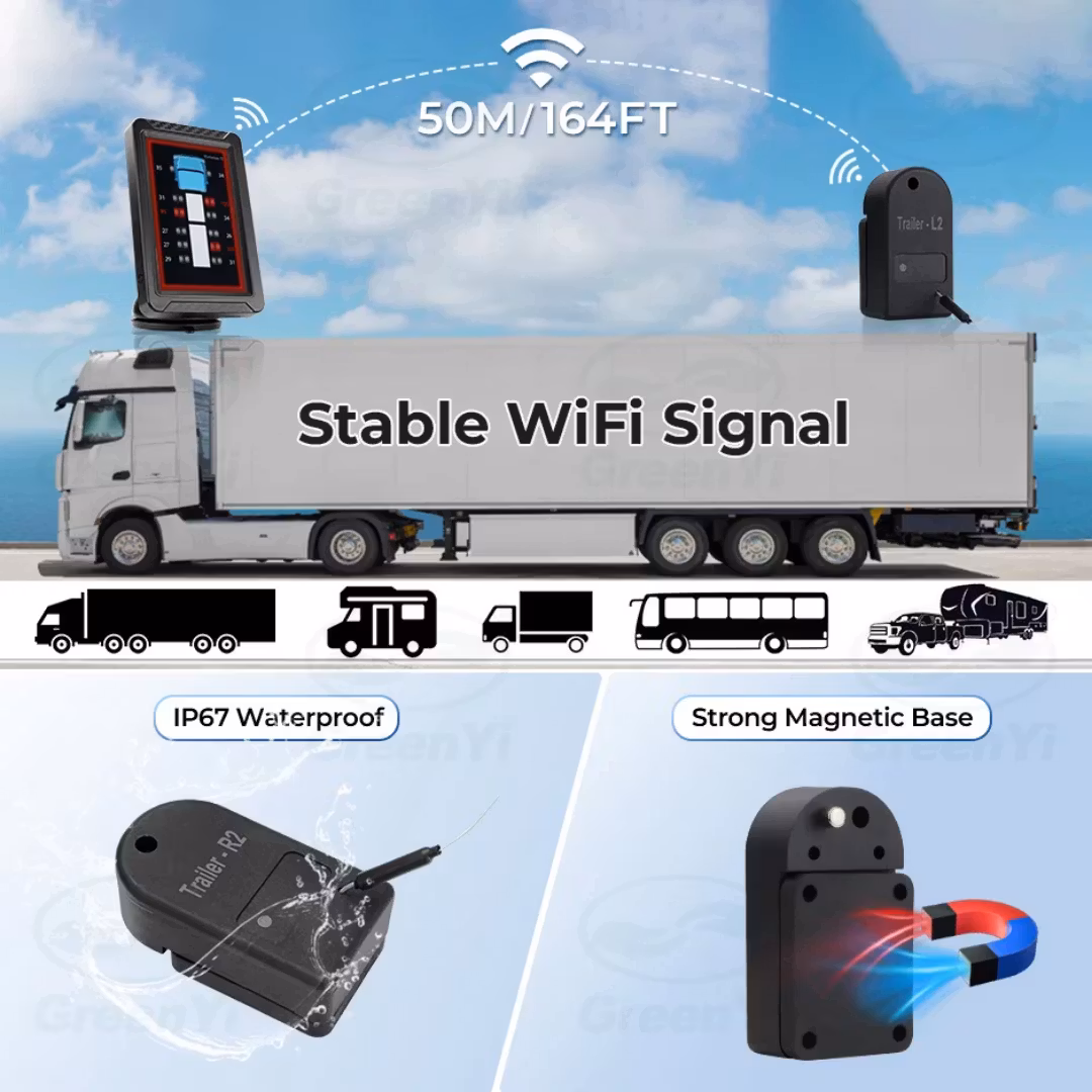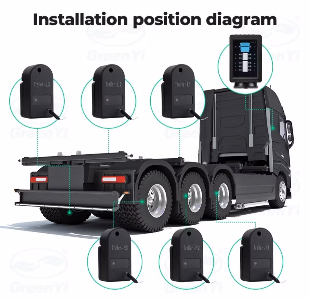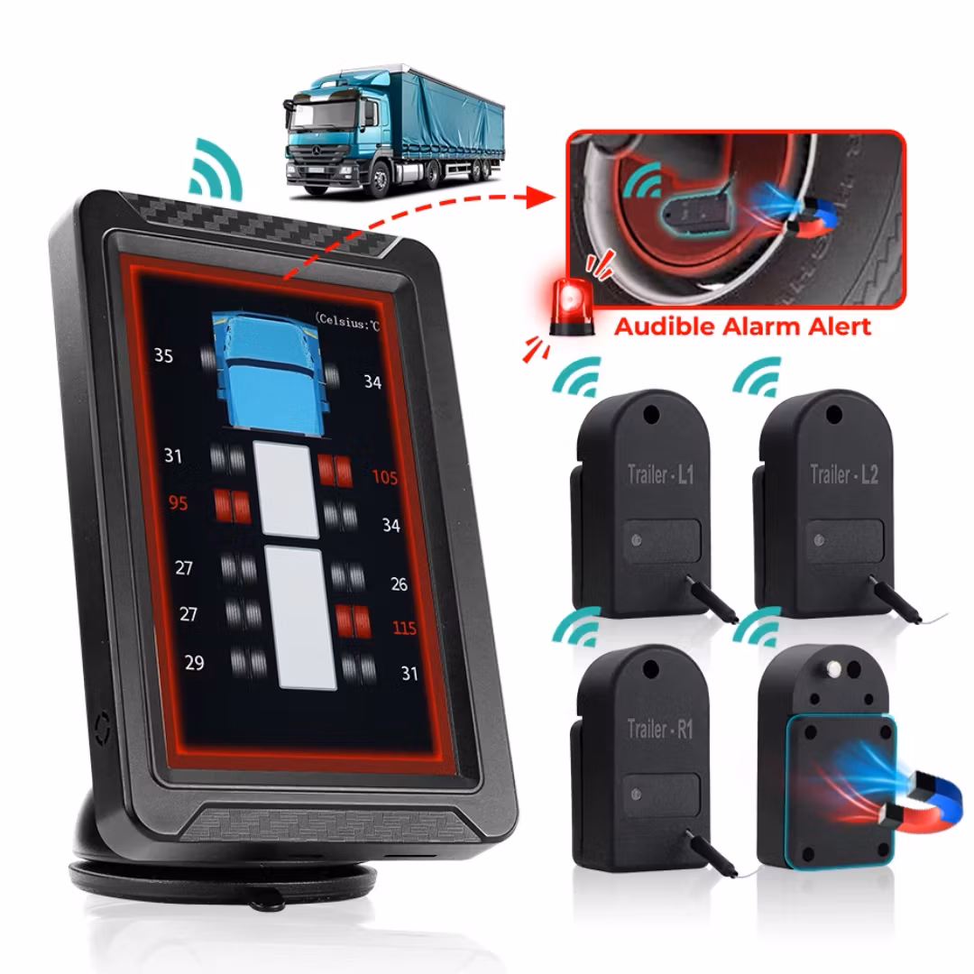 Trådlös termometer+4 sensorer för hjulnavtemperaturövervakning för lastbil, släpvagn,