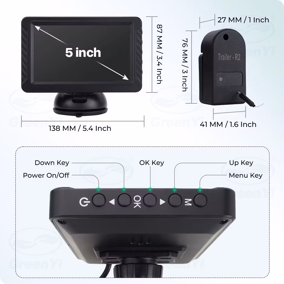 * 5-tums trådlös monitor, stabil signalmottagning, 50 meter långt mottagningsavstånd och snabb installation.