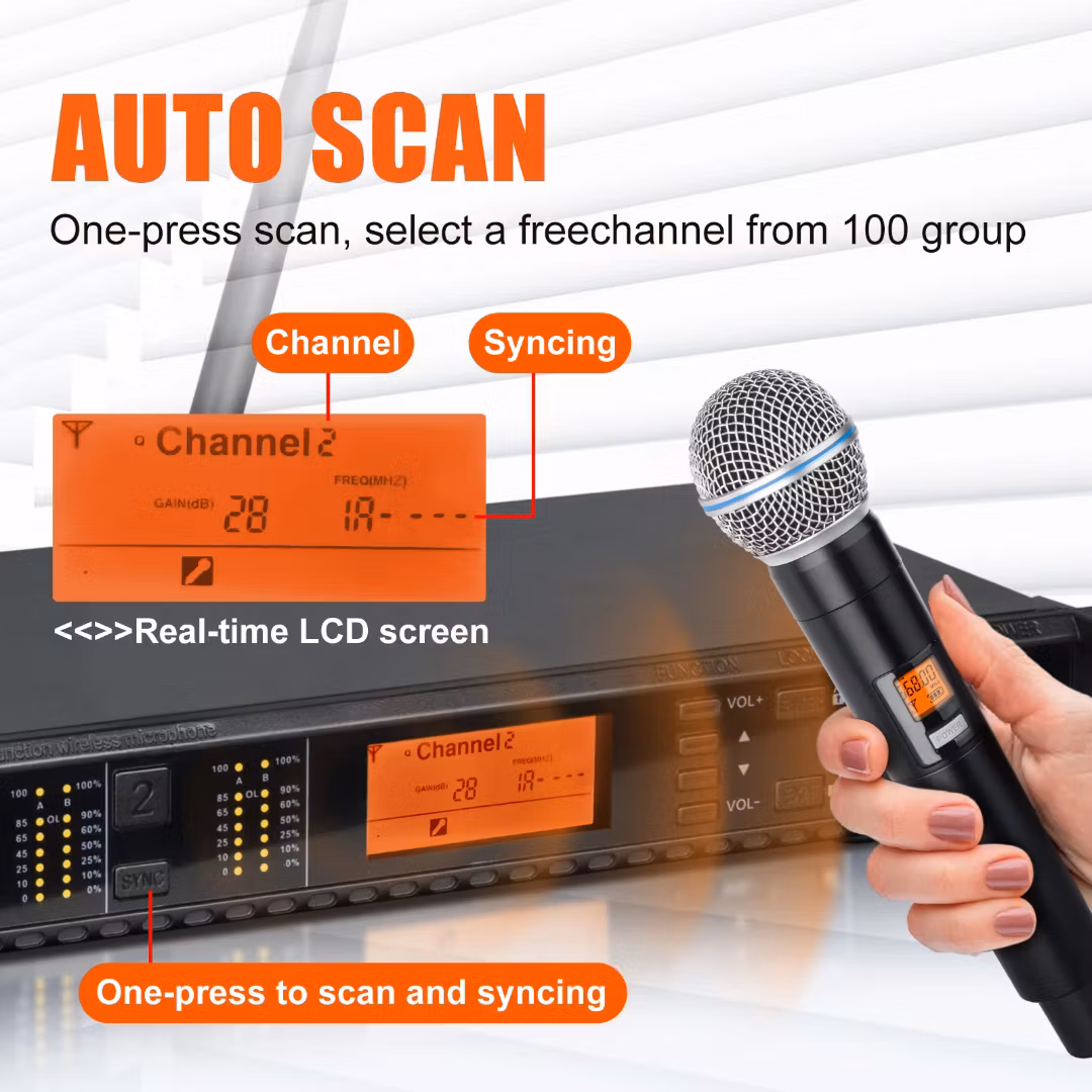 2-kanaligt dynamiskt professionellt mikrofonsystem