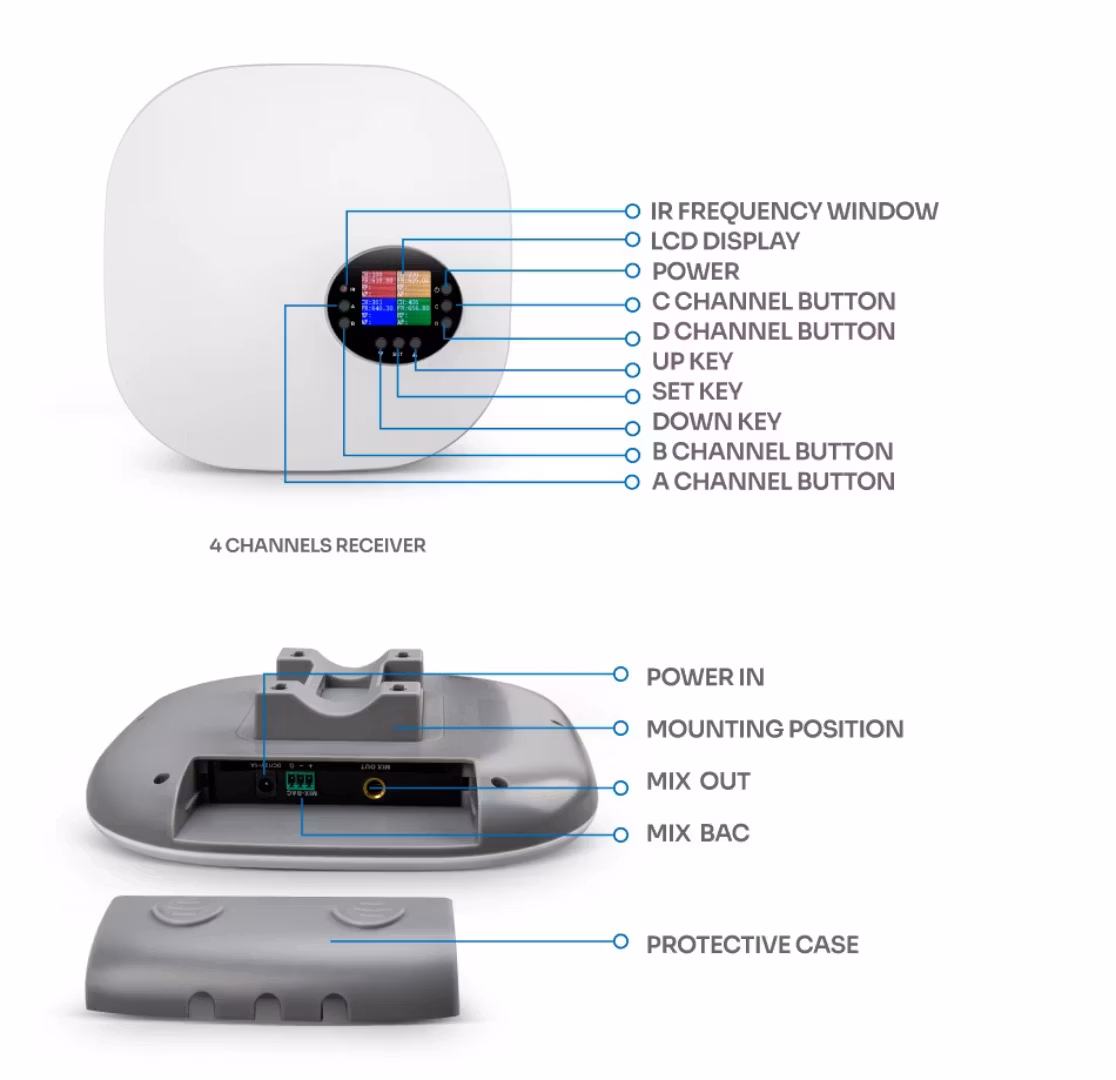 Professionell 2/4-kanals dynamisk trådlös kavajmikrofon