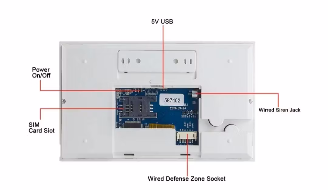 1. Sätt i 4G SIM-kortet i den och spara ditt telefonnummer till panelen. När vissa sensorer utlöses kommer larmsystemet automatiskt att ringa och skicka SMS till de förinställda telefonnumren, samtidigt som sirenen ljuder.
